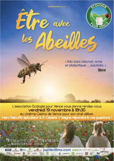 Nous vous invitons vendredi 19 novembre à 18h30 au cinéma Casino Vence à venir découvrir le film: Être avec les abeilles.